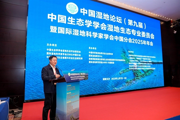 11月7日至9日,中国湿地论坛(第九届)中国生态学学会湿地生态专业委员会暨国际湿地科学家学会中国分会2025年年会在长沙召开。本次大会由中国生态学学会湿地生态专业委员会、国际湿地科学家学会(SWS)中国分会、中国科学院东北地理与农业生态研究所(下称“东北地理所”)主办,中国科学院亚热带农业生态研究所(下称“亚热带生态所”)、国家湿地研究中心、湖南洞庭湖湖泊湿地生态系统国家野外科学观测研究站(下称“洞庭湖站”)、国际湿地研究联盟(ANSO专题联盟)承办。中国工程院院士、亚热带生态所印遇龙研究员,中国生态学学会秘书长周伟奇研究员,中国生态学学会湿地生态专业委员会主任、东北地理所所长姜明研究员,中国科学院沈阳应用生态研究所党委书记、中国生态学学会湿地生态专业委员会副主任兼秘书长武海涛研究员,亚热带生态所所长陈洪松研究员、副所长谢永宏研究员,湖南省林业局副局长李林山,中国湿地保护协会副理事长兼秘书长鲍达明,国际湿地科学家学会主席Rebecca Pierce教授,美国北达科他州立大学Marinus L. Otte 教授,东北地理所吕宪国研究员,国际欧亚科学院院士、四川师范大学邓伟教授,中国科学院南京地理与湖泊研究所秦伯强研究员,东北地理所张敬杰研究员,中国科学院地理科学与资源研究所高扬研究员等湿地领域国内外专家、学者及研究生参加了本次盛会。本次大会共有来自60余家科研单位和高校的400余人参加会议。